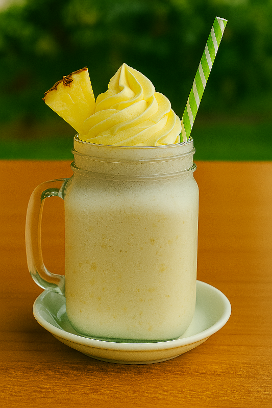 Bebida frappé elaborada con piña natural, crema de coco, yogurt y hielo, mezclados hasta lograr una textura suave y espesa. Su sabor combina lo exótico de la piña colada con la frescura del yogurt, ideal para días calurosos o como opción ligera y nutritiva.
