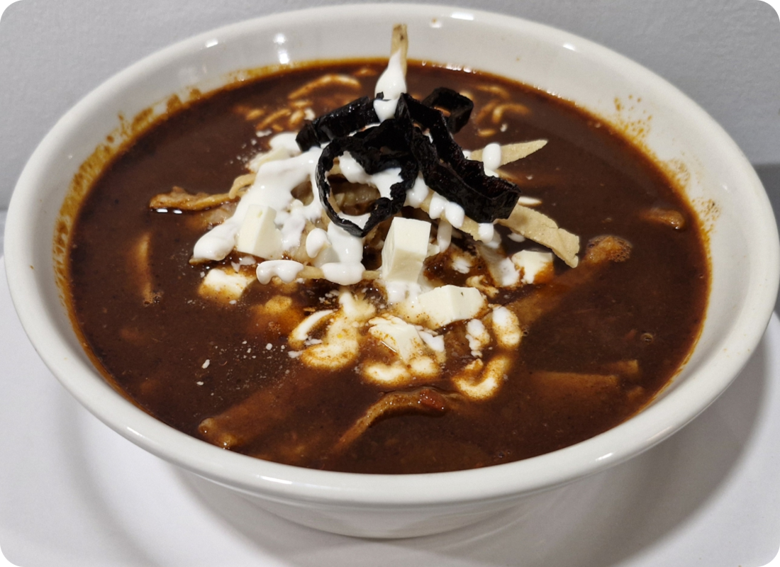 Un clásico mexicano que reconforta desde el primer sorbo. Preparada con caldo de jitomate sazonado, tiras de tortilla dorada, queso rallado y un toque de crema. Servido con queso, crema y tiras de tortilla.